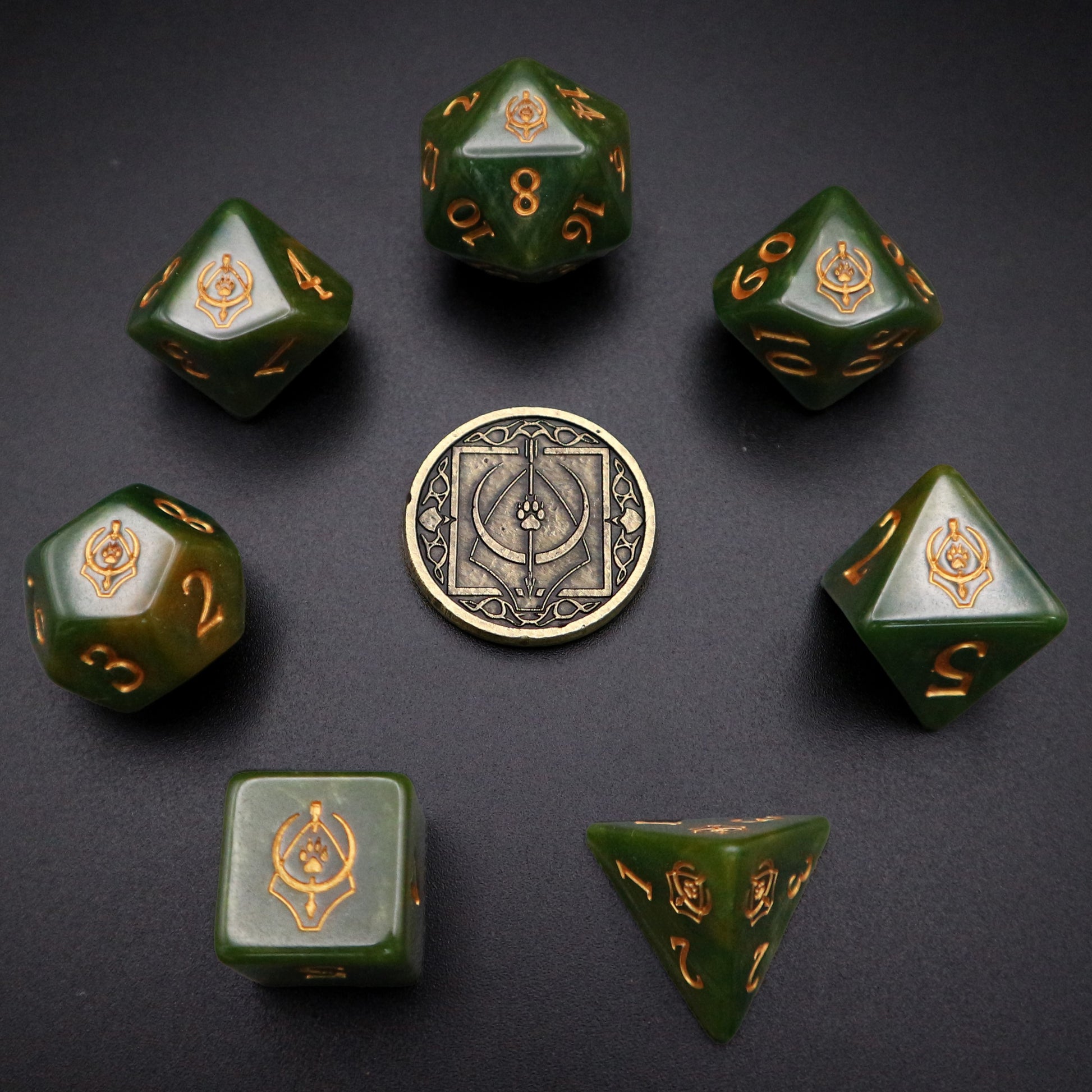 Featuring the symbol of the Wild, this premium polyhedral dice set is perfect for rangers, hunters and wardens at home at the edges of civilization. Each set contains: