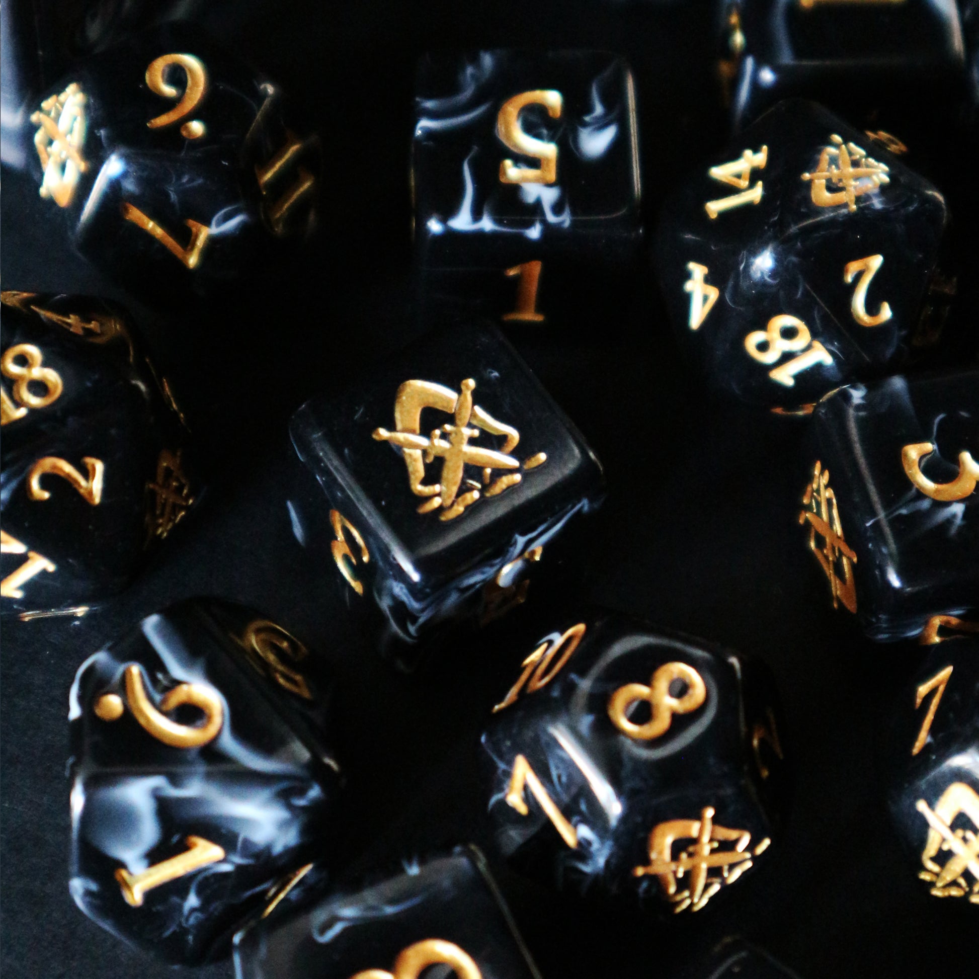 Featuring the symbol of Scoundrels, this rogue dice set is perfect for when you just need more dice. The unique class symbol replaces the highest value on each die.