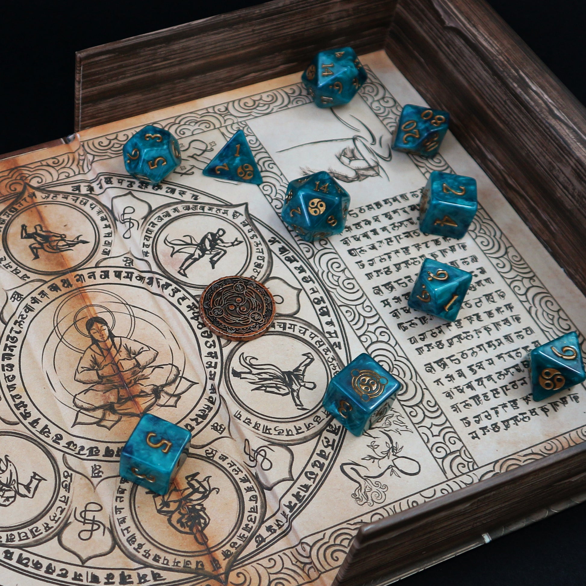 Dice Tomes are a series of exquisitely themed dice sets perfect for fantasy RPGs, tabletop roleplaying, and fantasy board games. Each Tome is themed around an iconic classic character class. The Tome of Balance is for Monks, Disciples and Votaries who seek perfection and balance in all things...