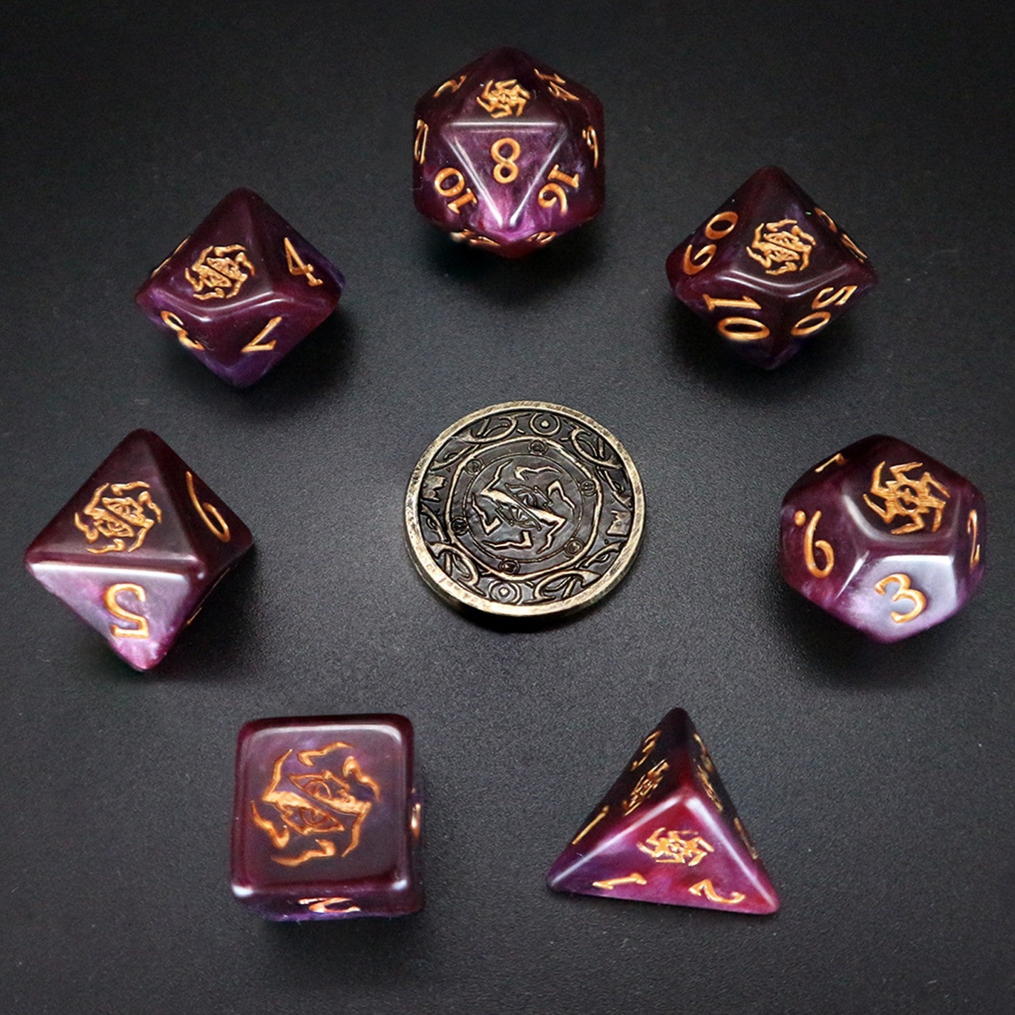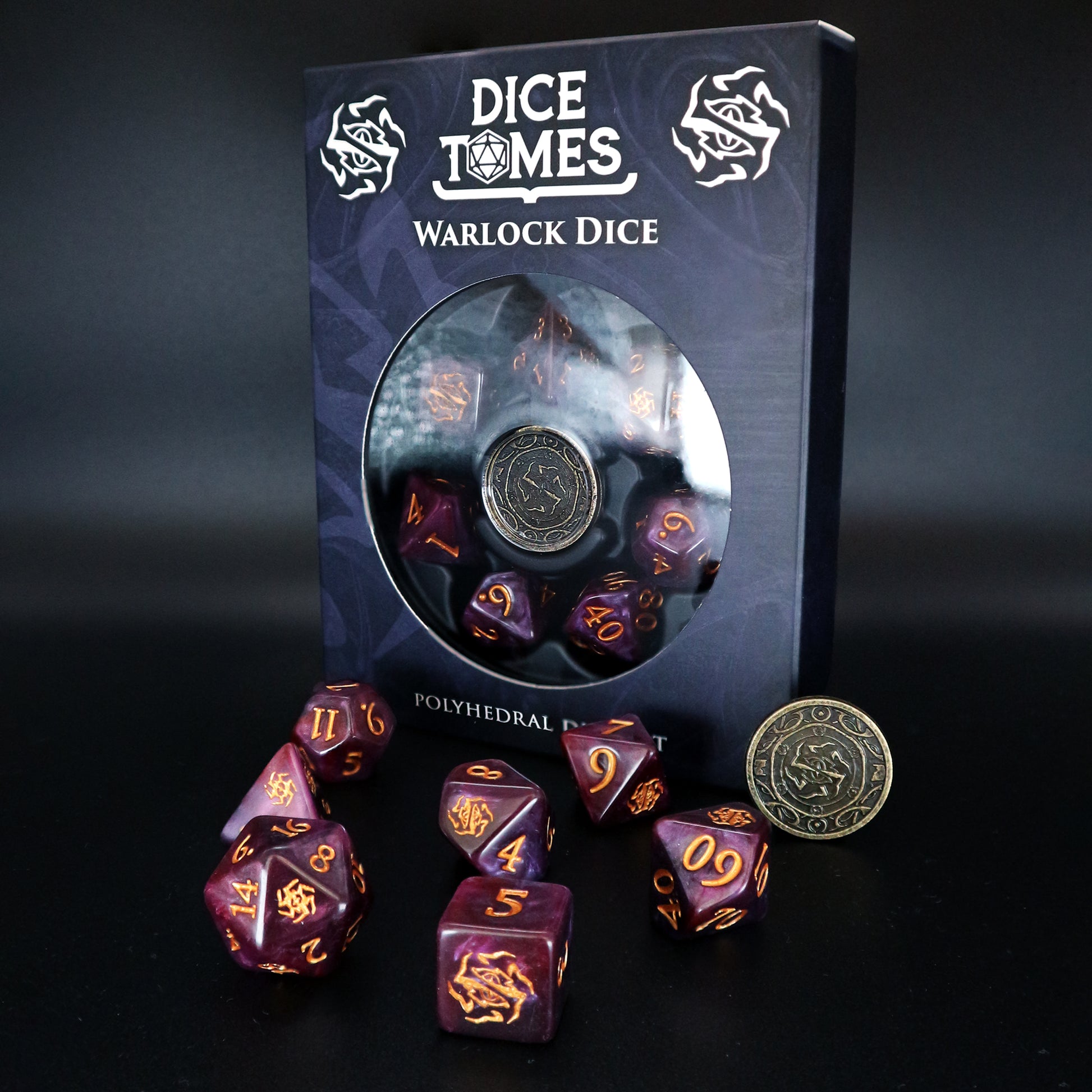 Featuring the symbol of the Occult, this premium polyhedral dice set is perfect for Warlocks, Witches and Occultists who plumb knowledge from unfathomable reaches. Each set contains: